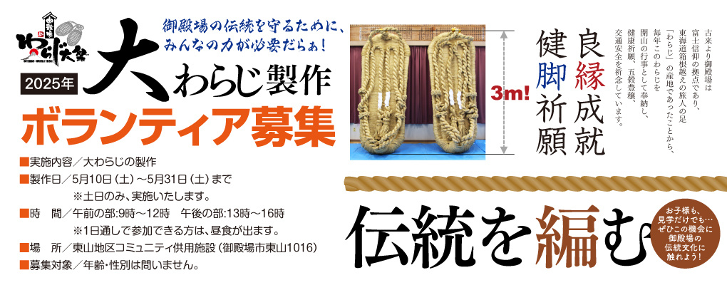 御殿場わらじ祭りのシンボルである「大わらじ」の製作ボランティア募集を行います。![]()