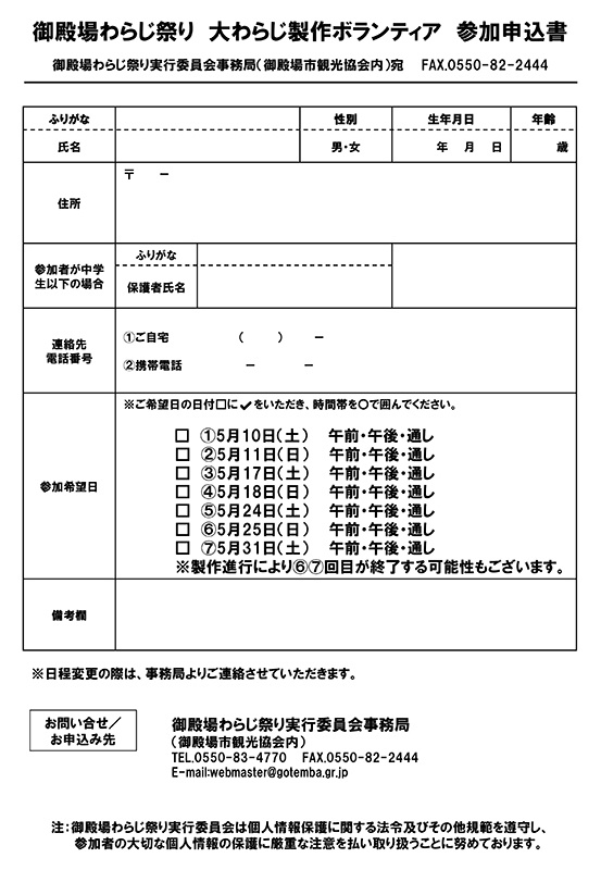 大わらじ製作ボランティア参加申込み書
